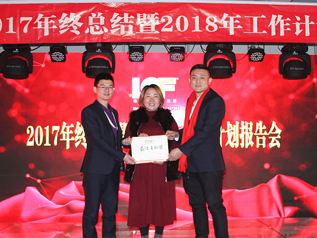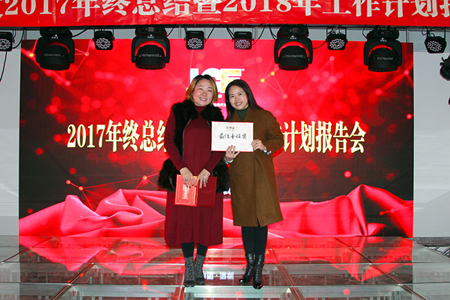 龍平芳女士為獲得“最佳貢獻(xiàn)獎”部門頒發(fā)證書